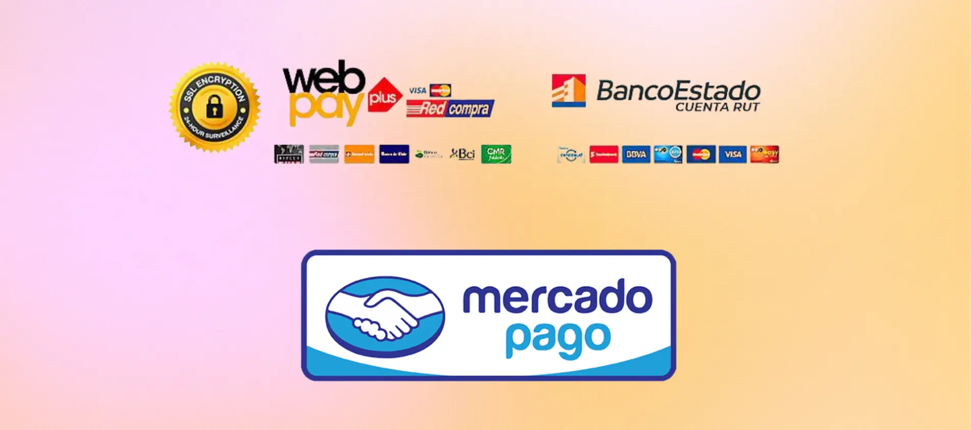 💳 Tarjetas de crédito y débito: Visa, Mastercard, American Express, Red Compra Mercado pago y más.